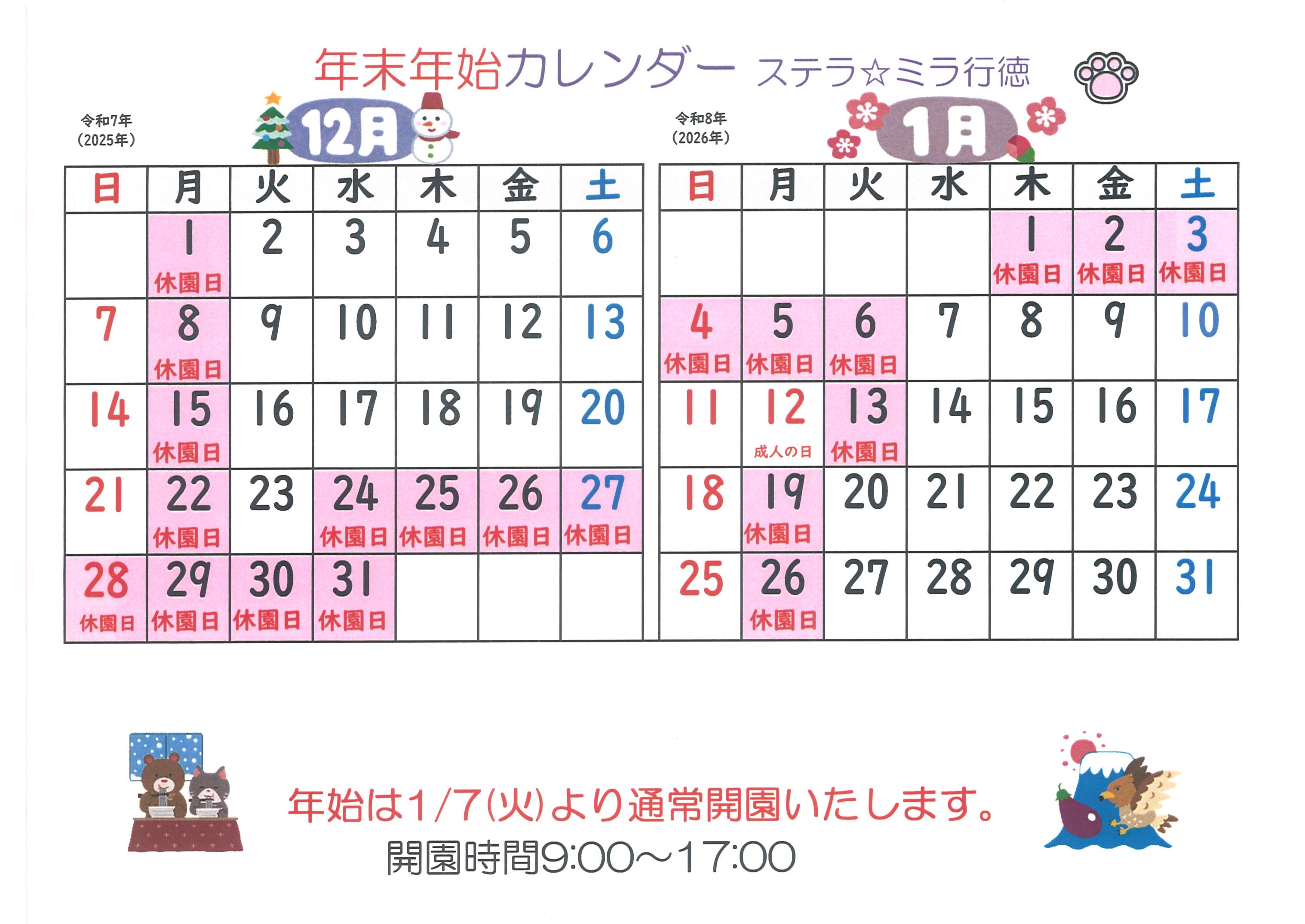 年末年始休業中はステラ☆ミラの事務所が閉まっておりますので、