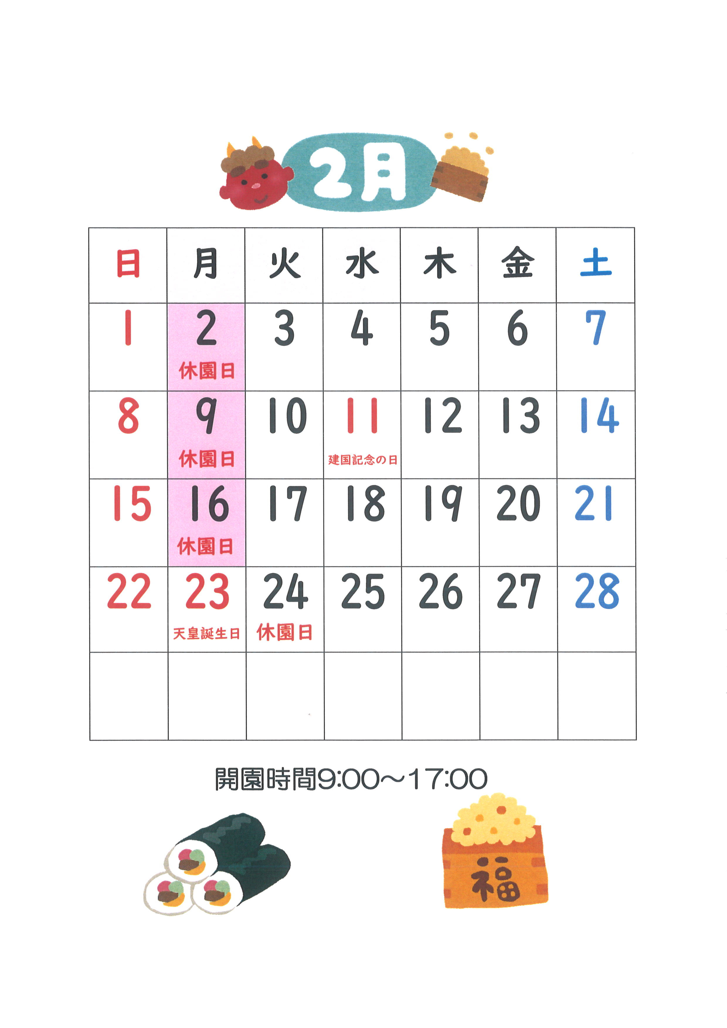 休園日: 2日(月)、9日(月)、16日(月)、24日(火)